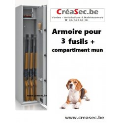 Coffre pour 3 fusils avec coffret intérieur à clefs. Fermeture de la porte par 3 côtés. Systeme d'ouverture disponible en version à clé ou électronique