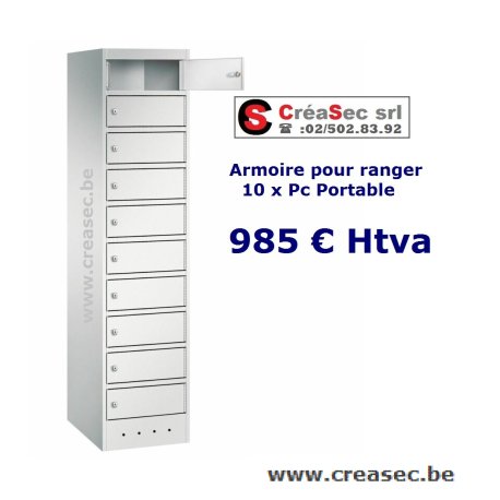 L'armoire de 10 casiers avec fermeture par clé est prévu pour vos ordinateurs portables